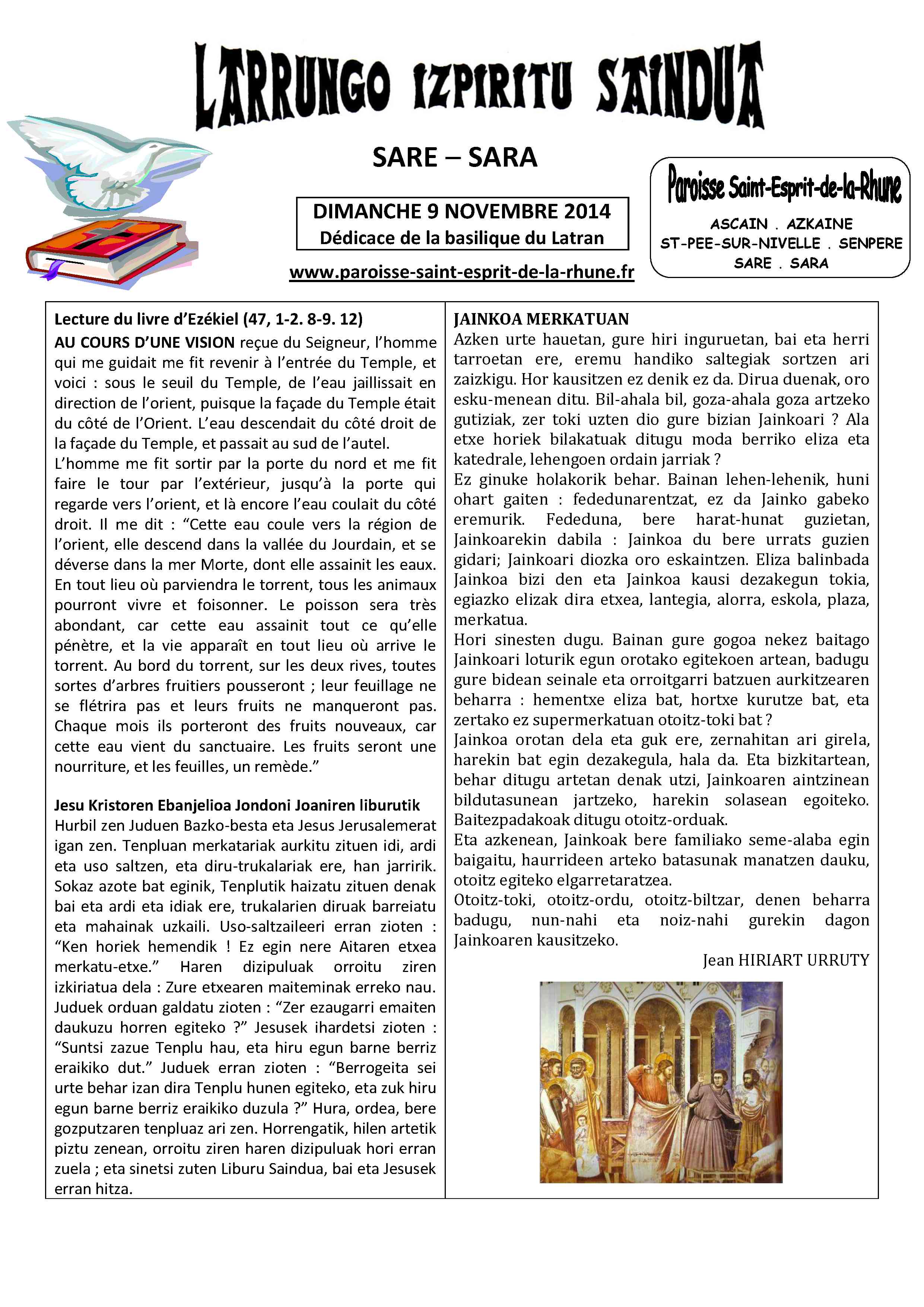 FEUILLEPAROISSIALE9NOVEMBRE2014SARE