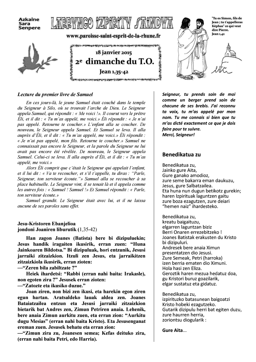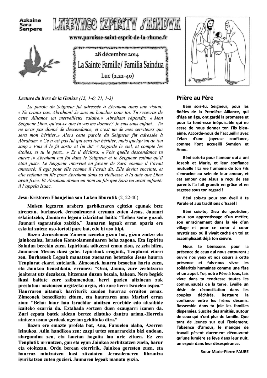 FEUILLEPAROISSIALE9NOVEMBRE2014SARE