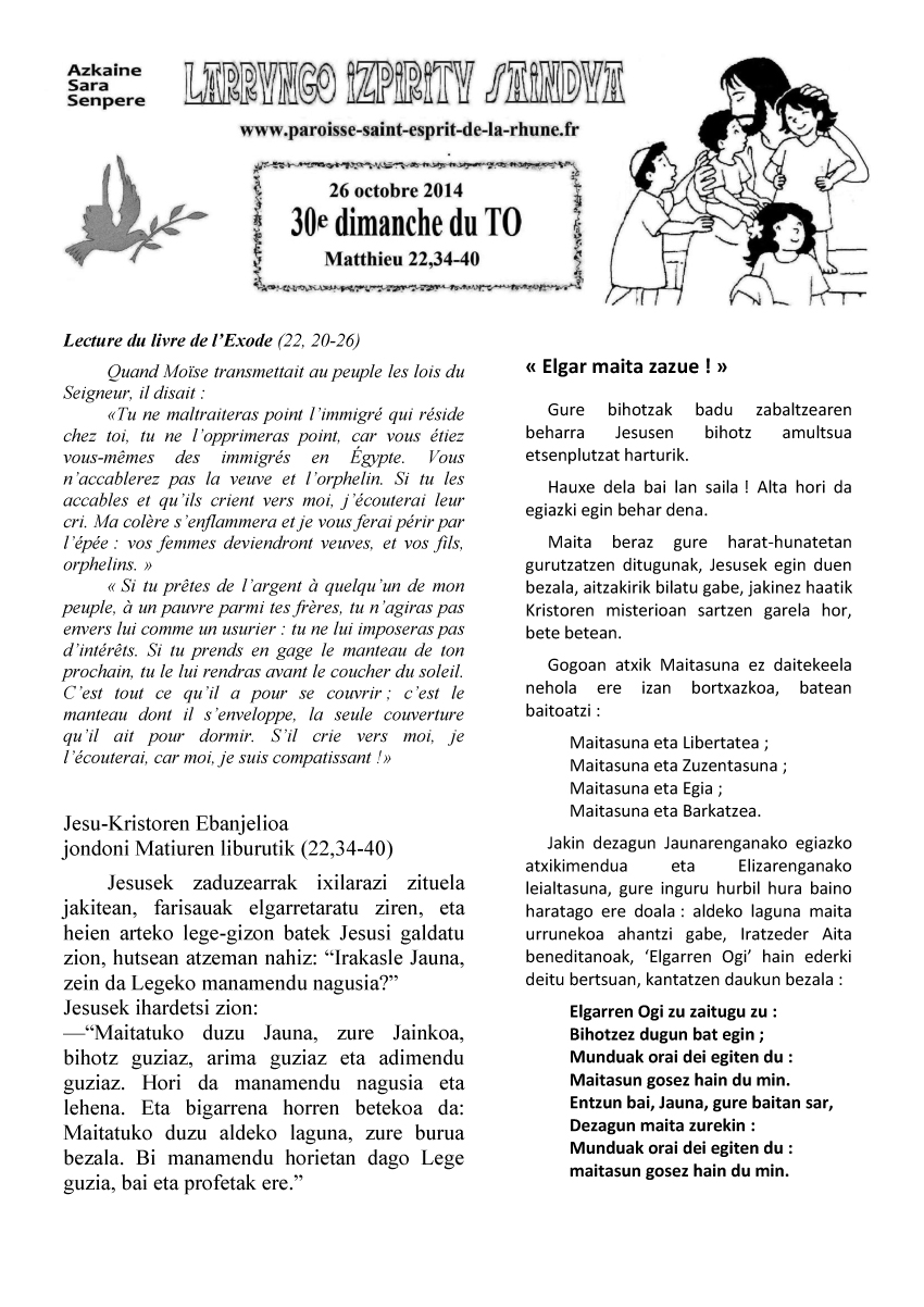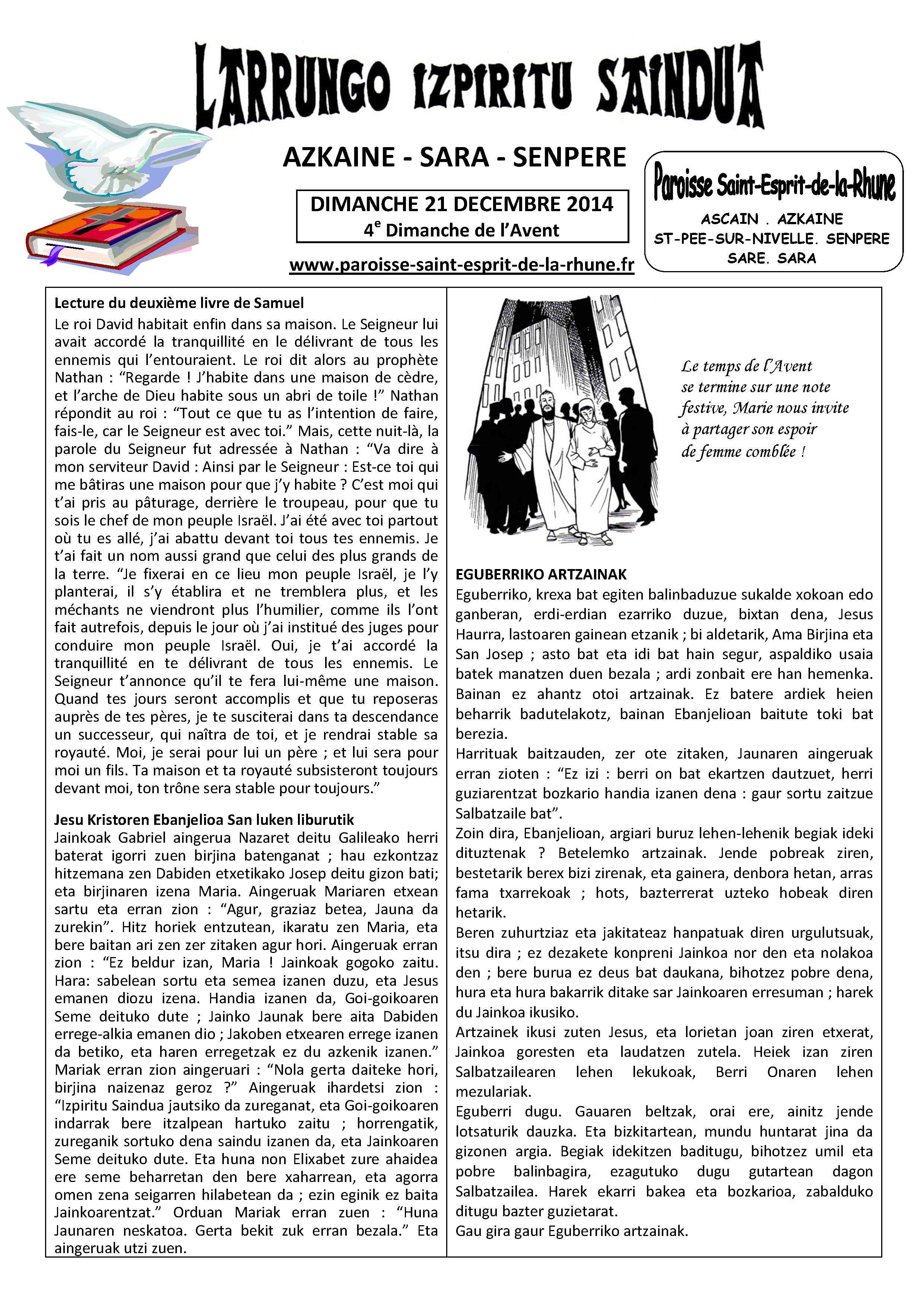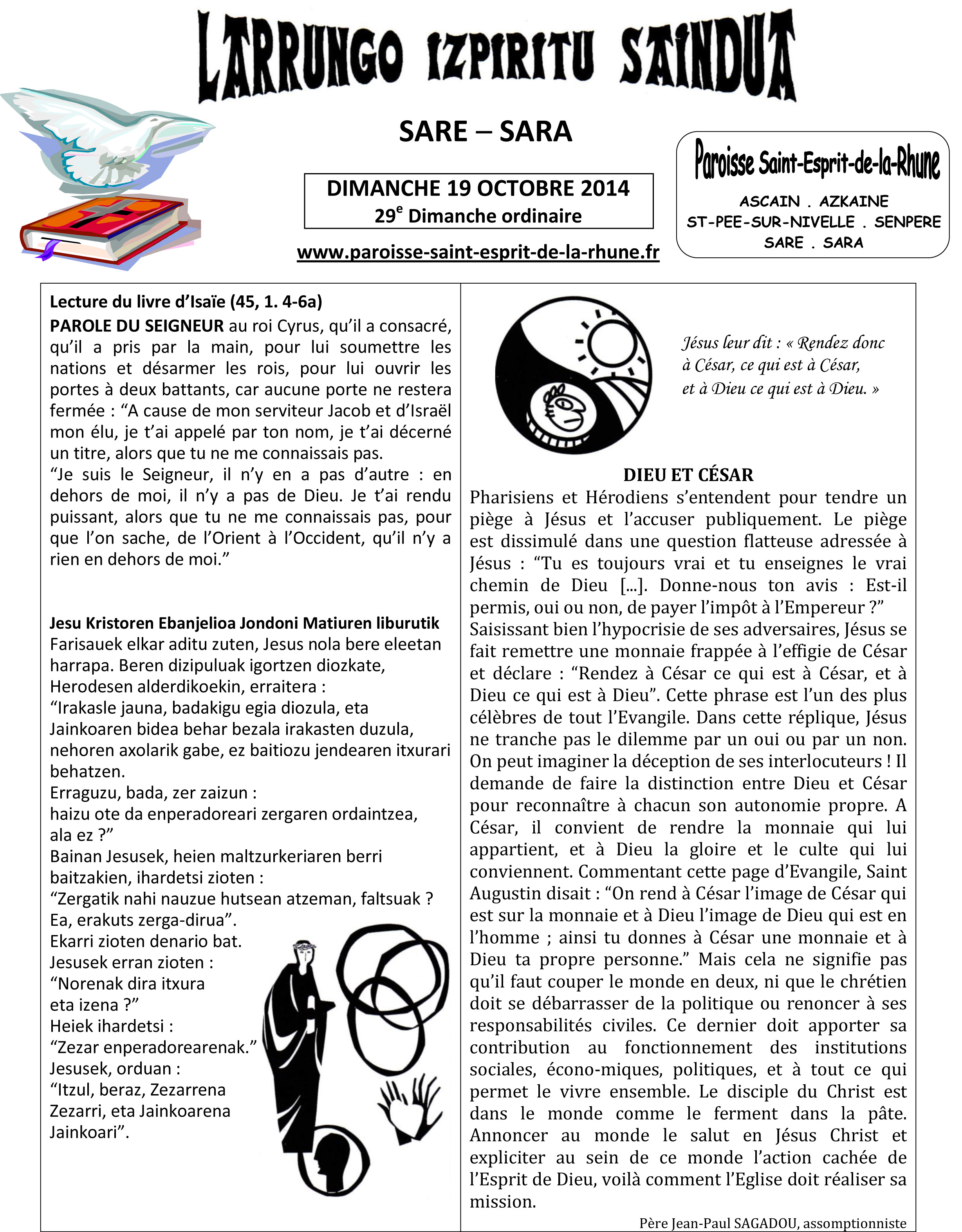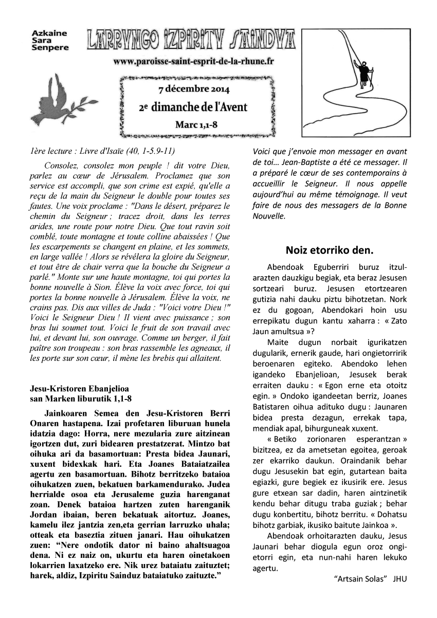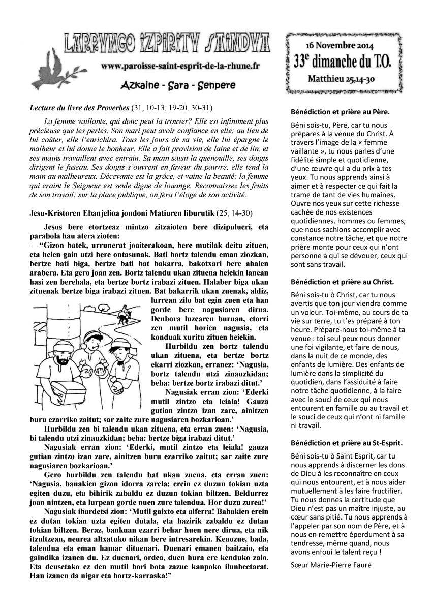 FEUILLEPAROISSIALE9NOVEMBRE2014SARE